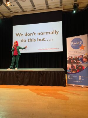 keynote speaker Carrie Grant MBE, shared numerous challenges of school avoidance, wranglings with authorities, plus helpful and hopeful stories of wins and successes.